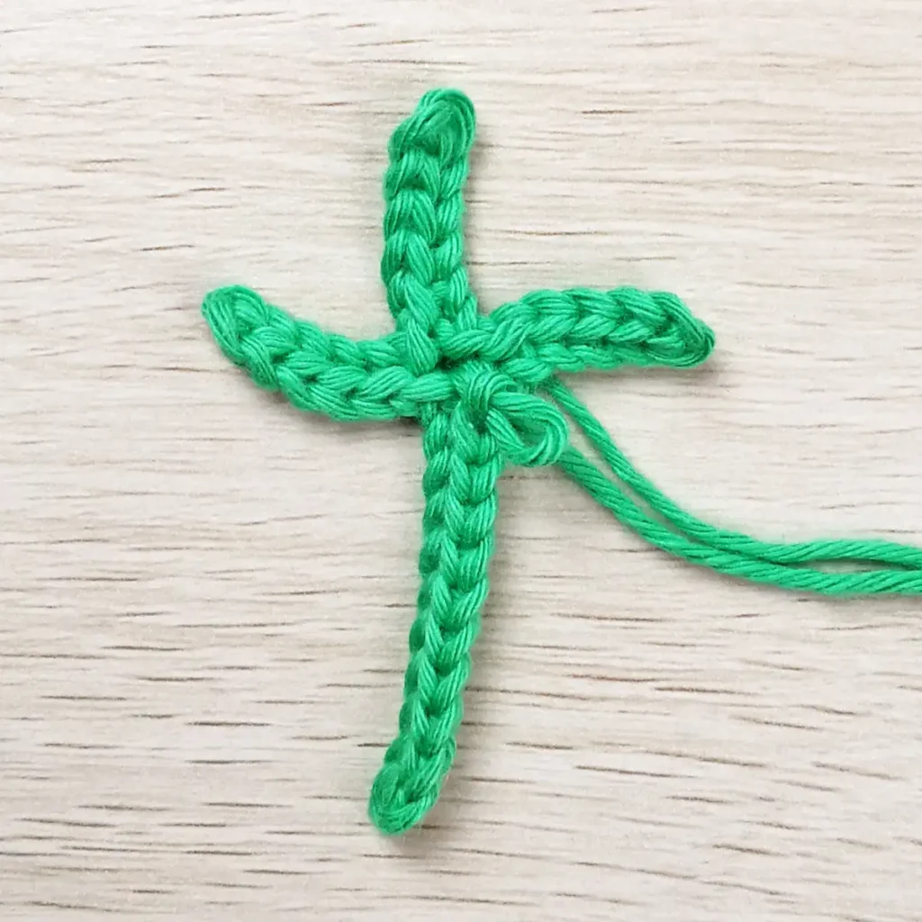This crochet shamrock pattern is made up of 2 rounds starting with a magic ring.