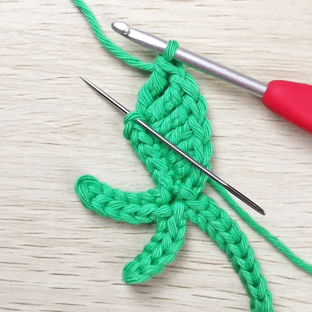 - Worsted weight yarn in green (I used Paintbox Yarns Cotton Aran in Grass Green)