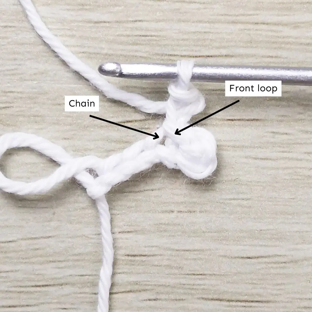 - The second point of each branch is finished by working through the front loop of the slip stitch from the first point and the chain that the slip stitch is worked into.